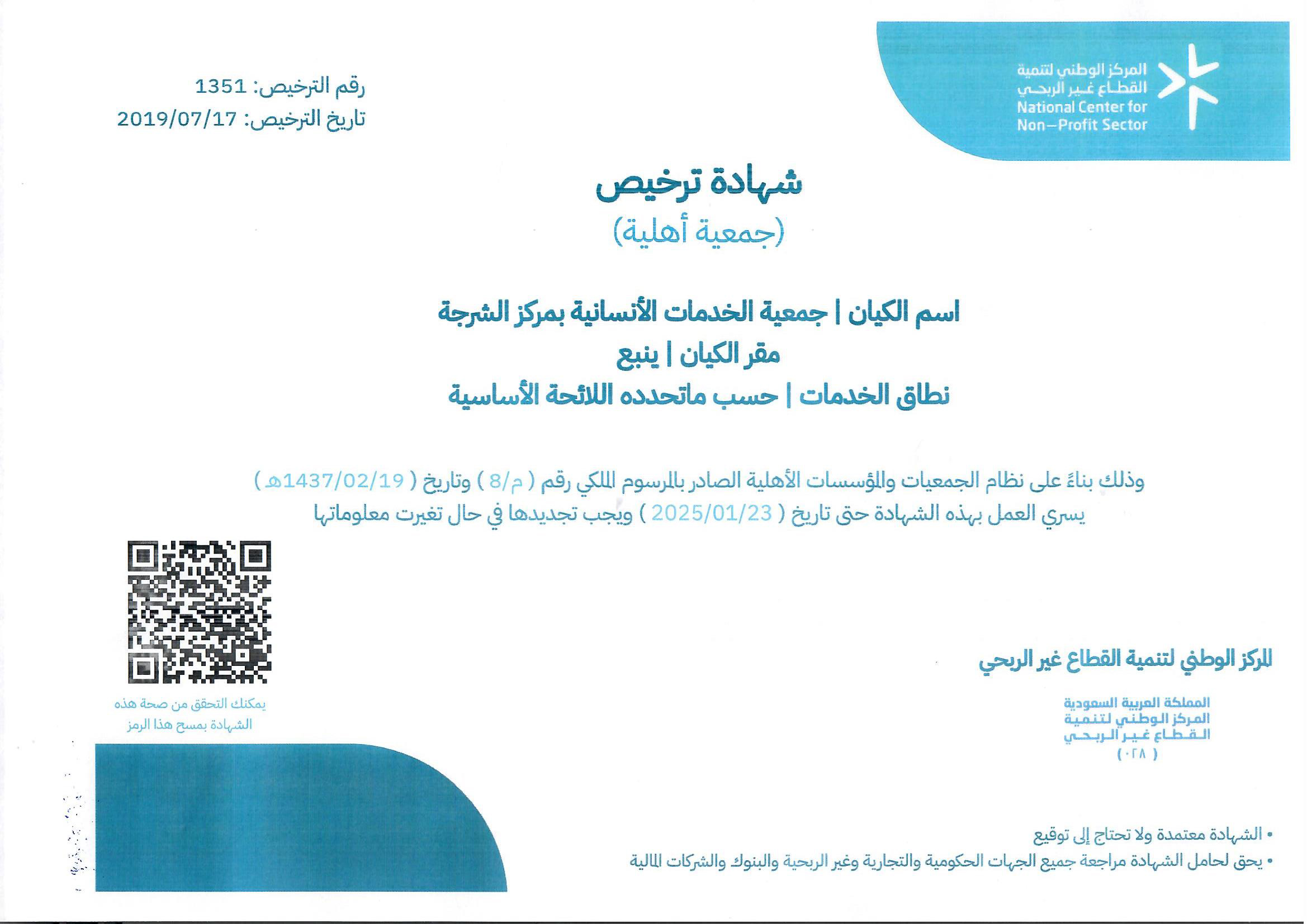 شهادة تسجيل الجمعية
